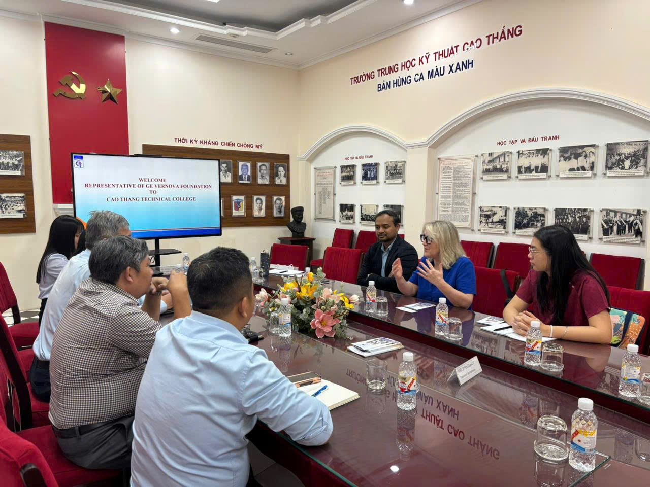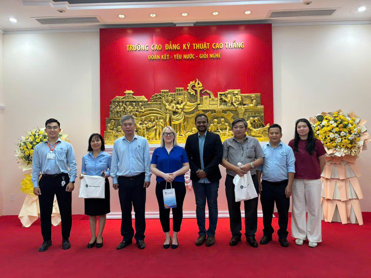 Buổi làm việc diễn ra trong không khí cởi mở và hợp tác, góp phần củng cố quan hệ giữa Trường Cao đẳng Kỹ thuật Cao Thắng, Quỹ GE Vernova Foundation và tổ chức ASSIST, đồng thời thúc đẩy các hoạt động phát triển kỹ năng cho lĩnh vực năng lượng tái tạo trong thời gian tới.